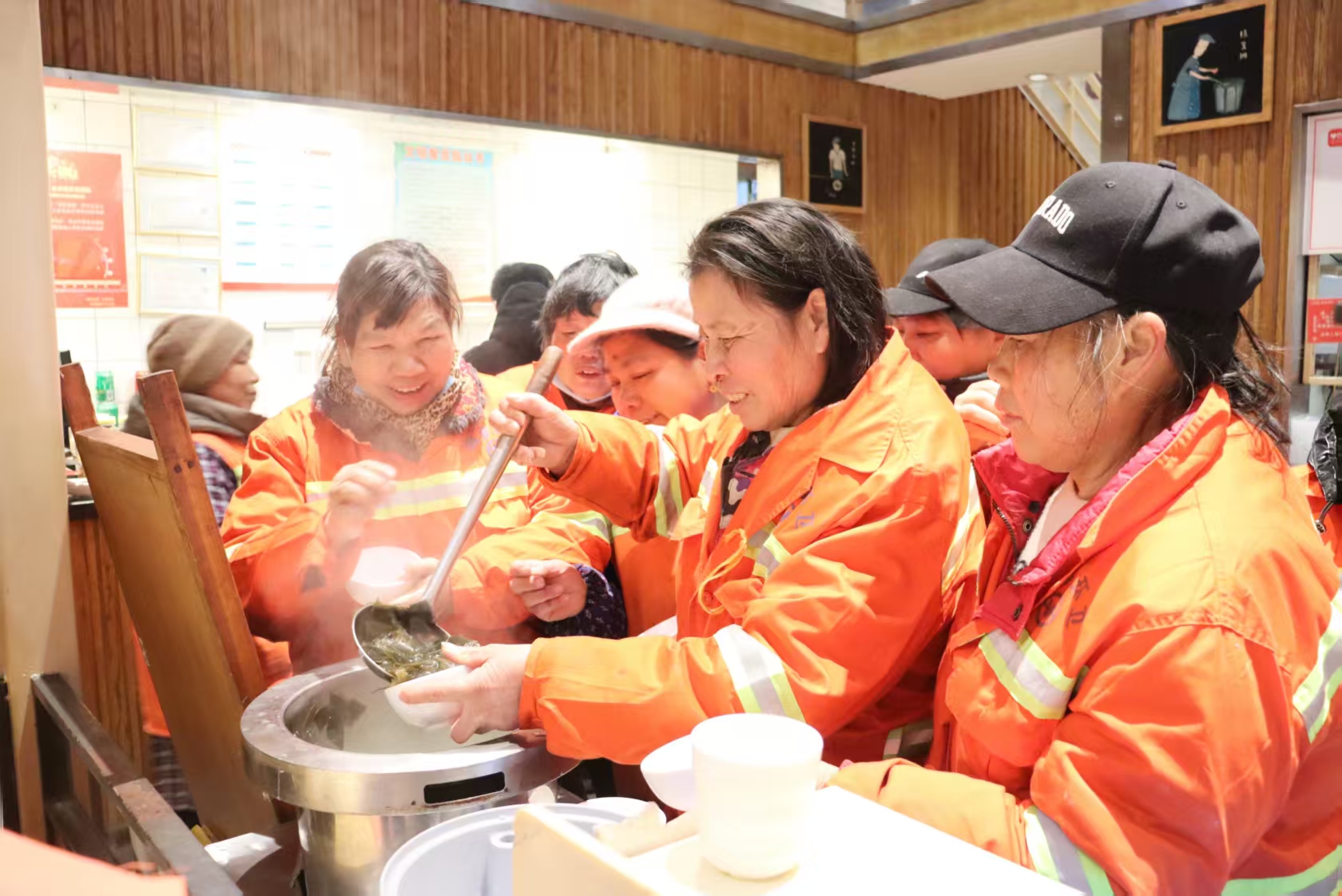 近日,在湘潭市总工会指导下,湘乡市总工会联合湖南鸣记德餐饮管理有限公司,在全市6家旺角清粥门店同步开展“寒冬送温暖,工会在行动”爱心餐发放活动,为户外劳动者免费提供当天的早、中、晚三餐,用一碗热餐驱散寒意,传递关怀。
